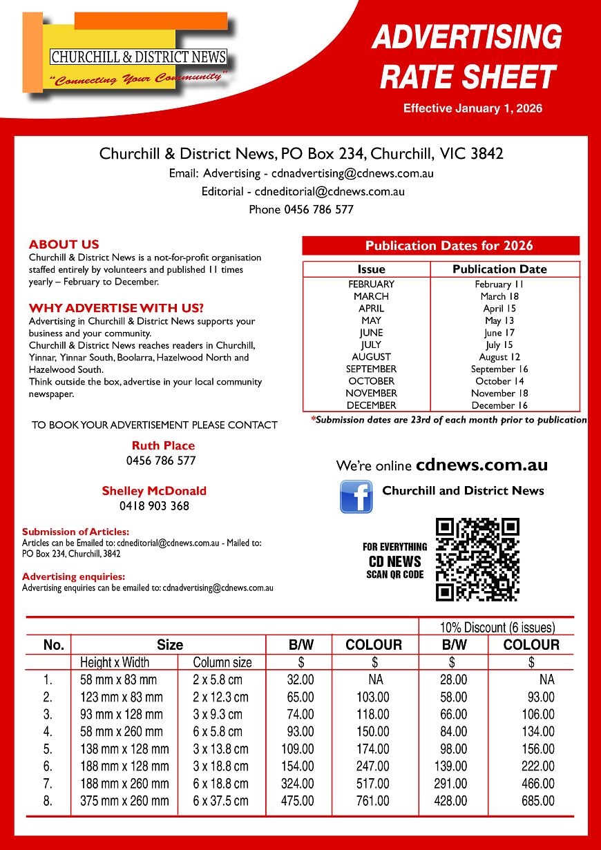 Churchill & District News, PO Box 234, Churchill Vic 3842